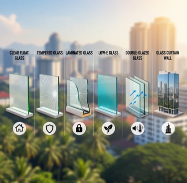 4. Low-E (Low-Emissivity) Glass - Features a microscopic coating that reflects heat while allowing light in. Reduces energy costs by 30-50% — highly recommended for Malaysia's hot tropical climate.